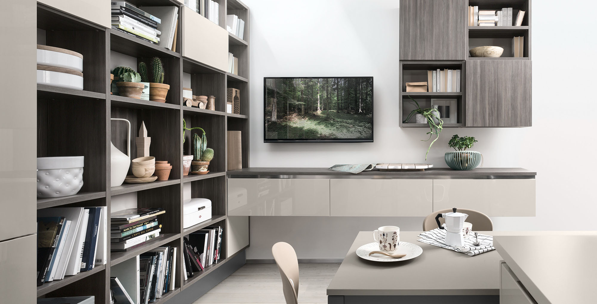 Il sistema Living è in grado di dare profondità espressiva non solo alla zona cucina ma anche alla zona giorno per un ambiente coerente e vicino alle quotidiane esigenze di progettazione. Il sistema Living definisce uno spazio con una propria identità, oltrepassando i tradizionali confini che dividono la zona giorno dalla cucina, riallocando operatività e destinazione d’uso. Gli elementi della cucina non sono quindi isolati, ma vengono giustamente esibiti, rendendo spontanea l’integrazione con l’area living.